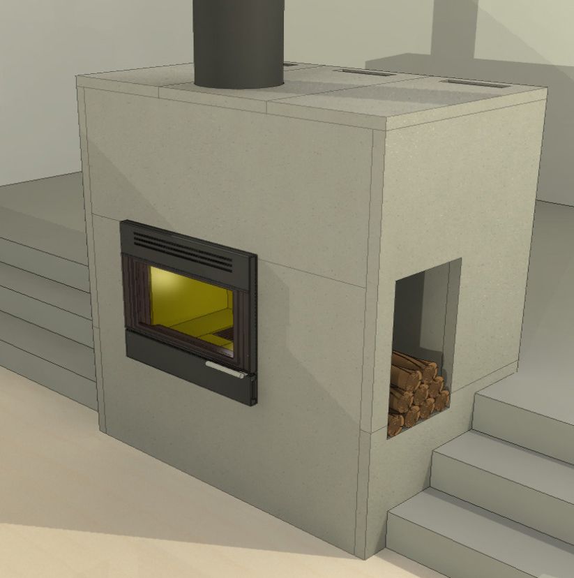В Германии очень распространены котлы центрального отопления из чугуна и огнеупорного кирпича, встроенные в керамическую плитку Kachelofens. Это помещает традиционный излучающий массовый обогреватель в центральную гостиную дома, но также направляет тепло в ряд удаленных комнат и также, вероятно, может производить горячую воду для бытовых нужд. Маловероятно, что такое центральное отопление Kachelofen будет гореть с эффективностью или чистотой стандартного «Grundofen» без водяной рубашки.