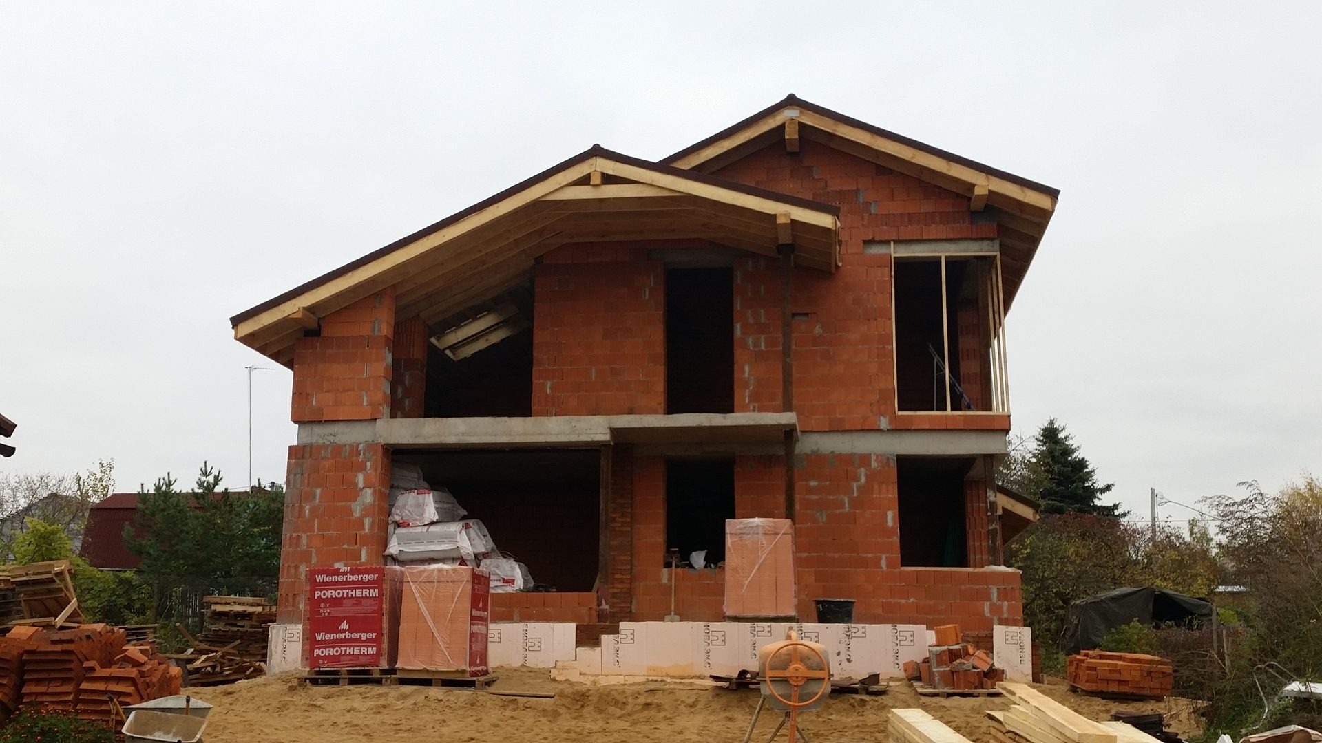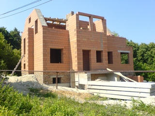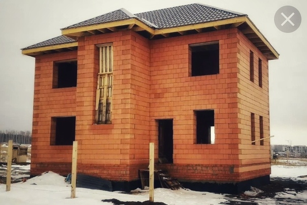 Большой двухэтажный дом из блоков на основе керамики на этапе строительства