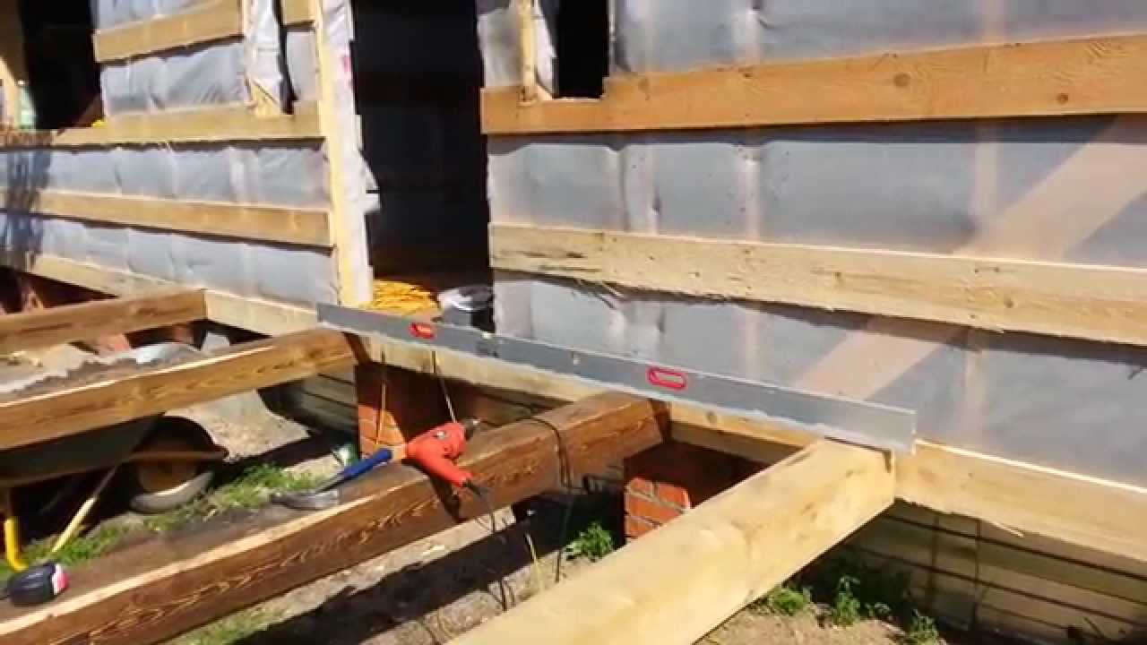 Для основы объекта монтируют каркас из металлического профиля либо обработанного деревянного бруса. Каркас возводится по периметру строения и для каждой стены отдельно.