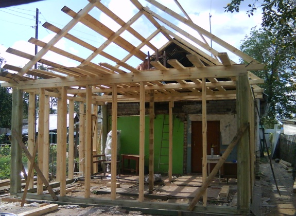 Каркас пристройки к деревянному дому, соединенный с основной крышейИсточник yandex.ru