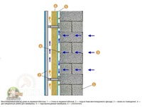 4. теплоизоляция снаружи здания продлит срок эксплуатации блоков, утеплитель препятствует промерзанию стен, точка росы выводится на внешнюю поверхность, откуда конденсат удаляется потоками воздуха.