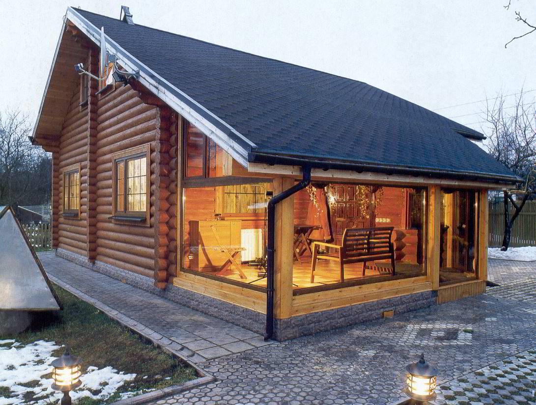 Небольшой вес пристройки позволяет использовать более простой в исполнении и недорогой фундамент. Другая особенность такой пристройки в эстетической внешней привлекательности. К тому же материал экологически безопасен.