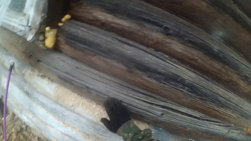 - Бревно нижнего венца плохо обработано, отсутствует водоотталкивающая пропитка, защита от биологического повреждения.