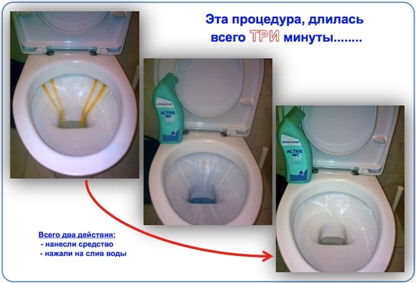 Чистка унитаза от водного и мочевого камня, известкового налета