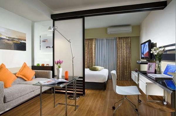 Часто деление на два участка является вынужденной мерой, когда места не хватает. Грамотное разделение помещения позволяет создать такой интерьер, когда недостаточность пространства практически не замечается.
