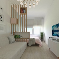 Данный способ можно использовать, если комната достаточно просторная. Желательно установить перегородку таким образом, чтобы в каждой из зон было хотя бы одно окно. В противном случае одна из частей оказывается лишенной естественного освещения.