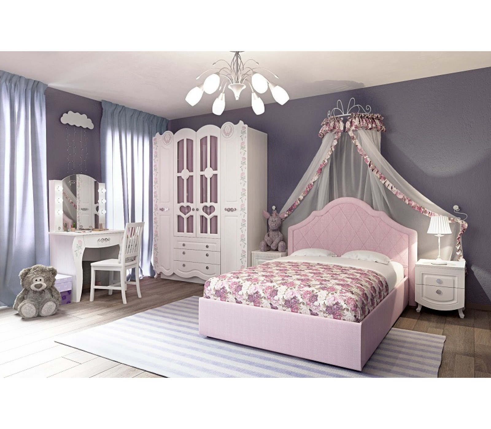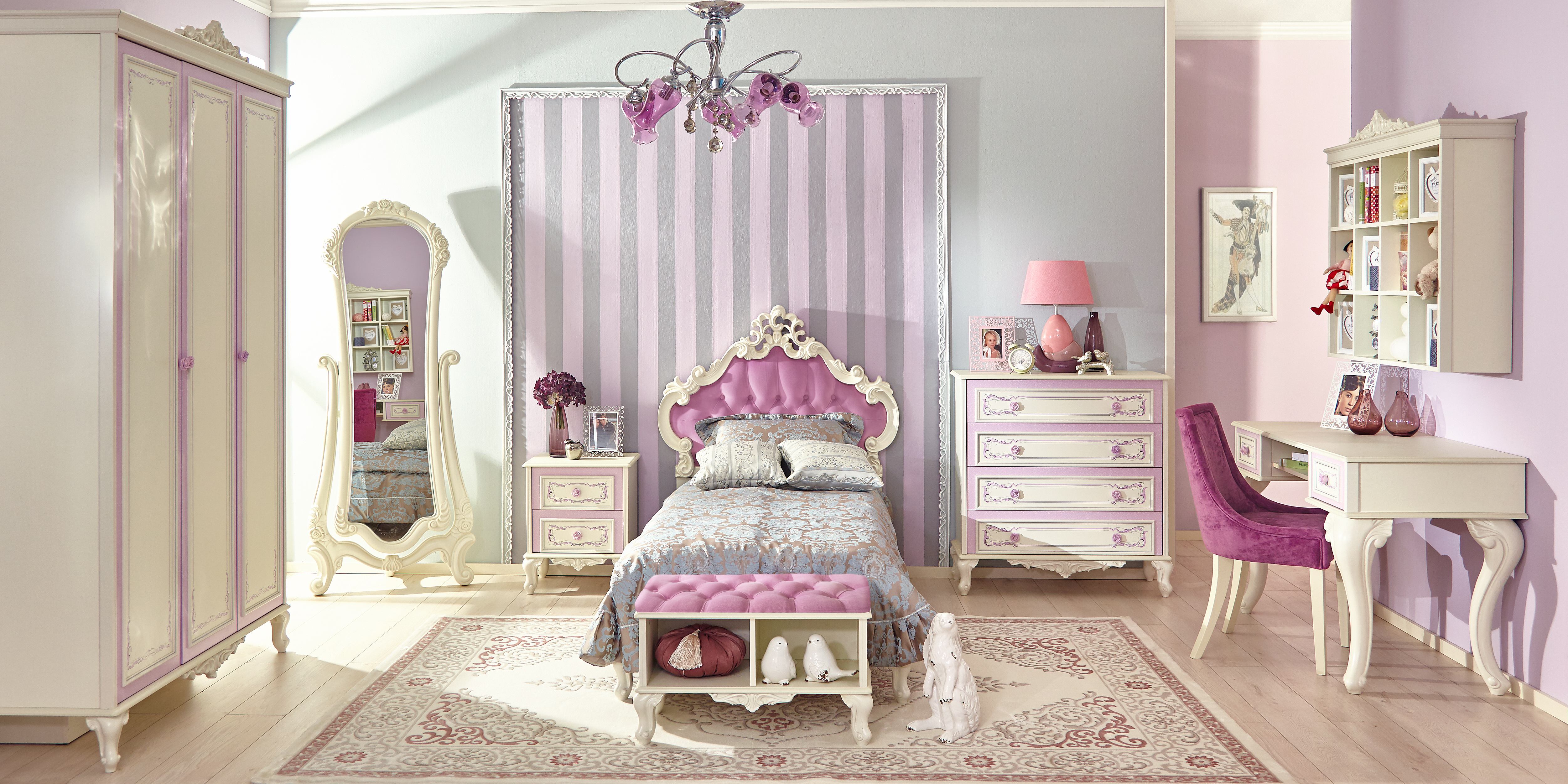 Для девочек постарше будет неплохо дополнить гарнитур туалетным столиком, за которым ребенок будет учиться ухаживать за собой и прихорашиваться перед встречами с подругами и друзьями. Зеркало и небольшой столик, где девочка будет хранить свои украшения, расчески и первую косметику, просто необходимы для юной леди. В зависимости от стоимости и комплектации в спальный гарнитур могут включаться некоторые другие предметы – детские стенки, пуф, трюмо, полки и многое другое.