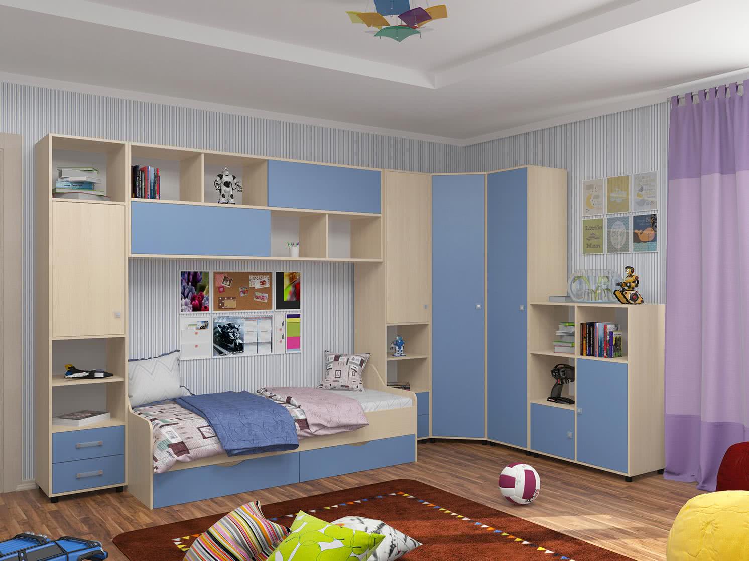 Давно принято, что для девочек используют розовые, сиреневые и персиковые оттенки, а для мальчиков — голубые, синие и зеленые. Хотя это подразделение весьма условно. Любой вариант, кроме розового и сиреневого, будет одинаково хорош и для юной принцессы, и для молодого пирата. А если в комнате живут двое детей разного пола, то можно подобрать гарнитур так, чтобы мебель была похожа, но отличалась оттенками, тем самым зонируя помещение.