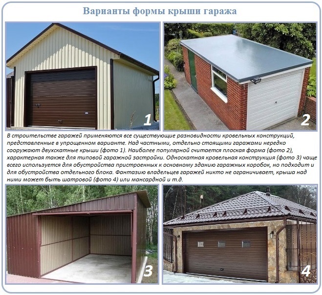 На сегодняшний день принято выделять следующие виды гаражных крыш: