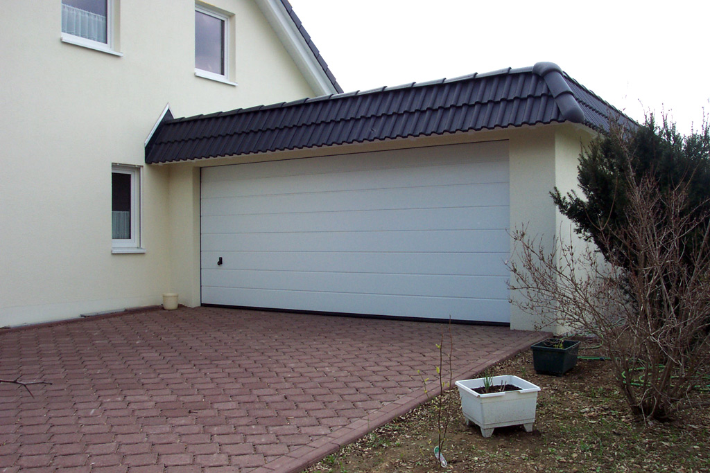 Установите 9-дюймовые гаражные ворота перед гаражом.