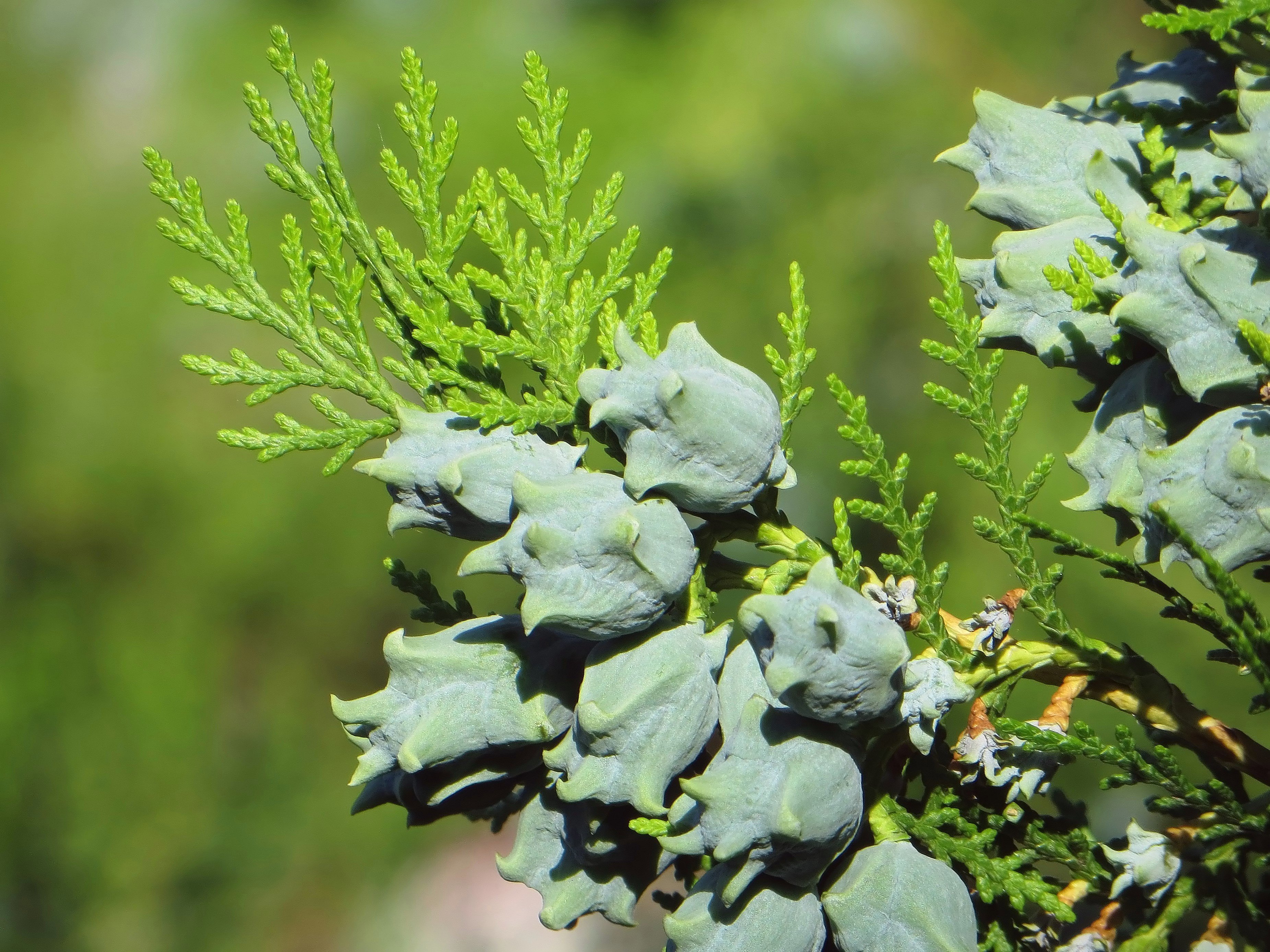 Цвет шишек туи-биоты – голубой или зелёный, а в размере они могут достигать 3 сантиметра (причём «женские» шишки значительно крупнее «мужских»). Шишки содержат семена, которые по своему внешнему виду сходны с зёрнами.