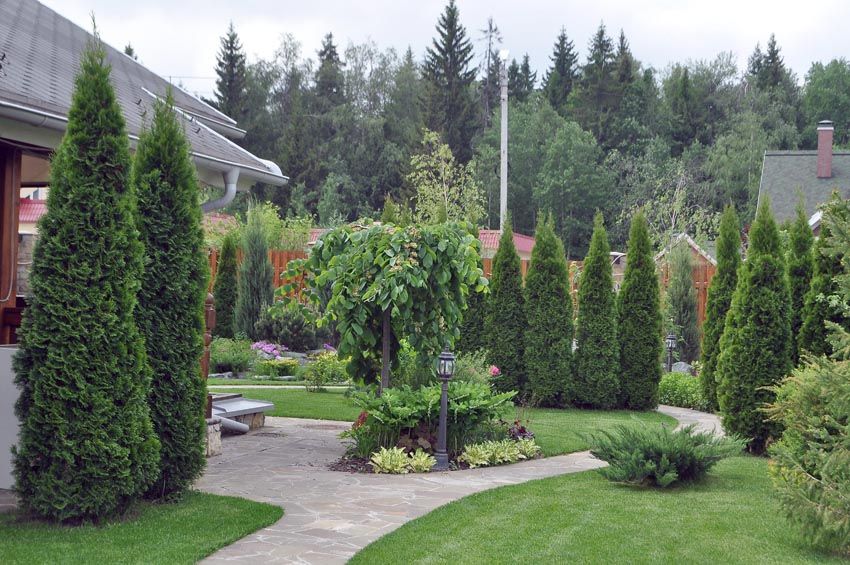 Приходите си può vedere далла фото ди уна туя nella progettazione дель paesaggio дель коттедж estivo sopra, Questa pianta ха повысить качество декоративного ed è perfettamente combinata кон уна обширной гаммы ди piante.Queste proprietà dell’efedra offrono agli allevatori di piante l’opportunità di esprimere tutta la loro immaginazione e creare compposizioni vegetali uniche sul site.