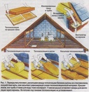 Подойдет деревянная конструкция, на которую натягивают пленку, или напылитель. - Если одновременно утеплять скаты, начинать рекомендуется с них. Плиты с одной стороны намазывают клеем и крепят к внутренней стороне кровли. Можно использовать саморезы, подставляя под них квадратные широкие пластины. Рулонный утеплитель можно резать после того, как он уложен между стропилами.