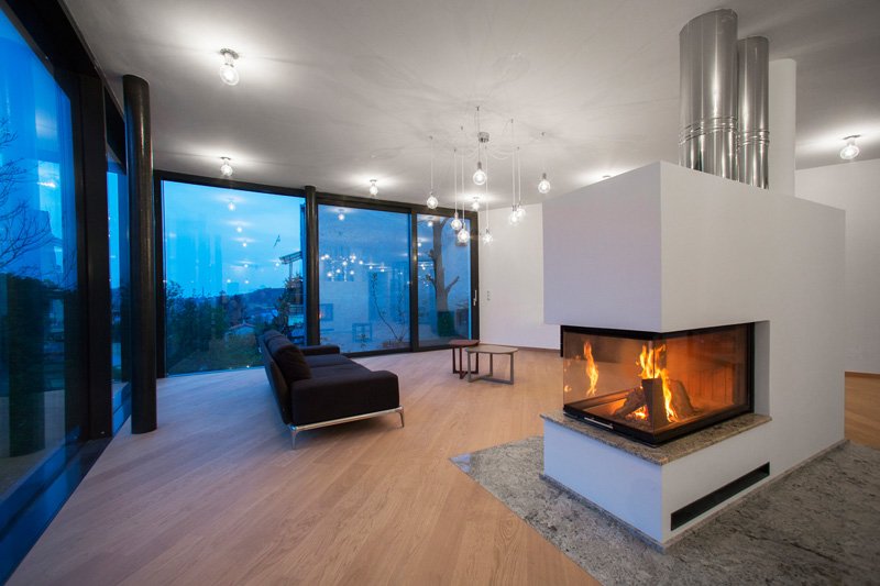 Камин со стеклянным фасадом приносит тепло вместе с безопасностью