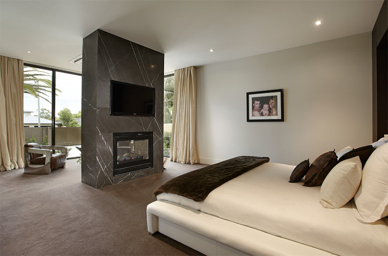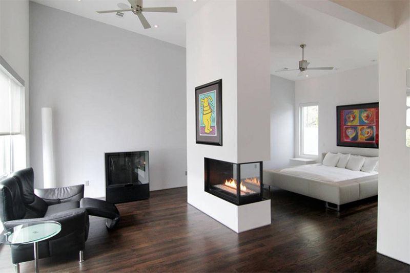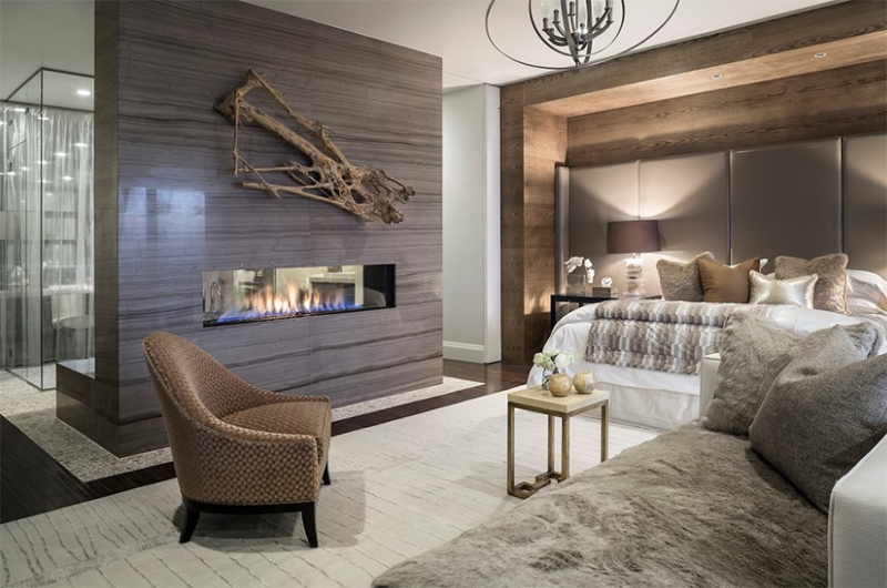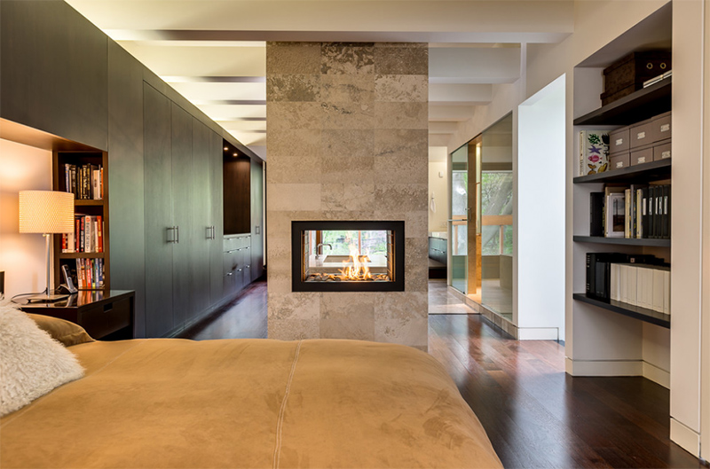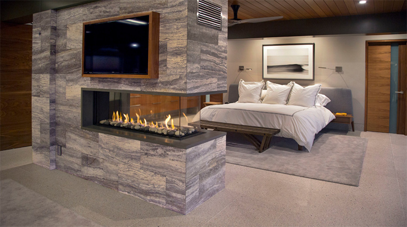 Камин можно установить не только в жилой зоне, но и в других частях дома. Куда бы вы его ни добавили, он может не только добавить тепла, но и привлекательности. Существуют разные конструкции и стили каминов. Сегодня мы расскажем о двухсторонних каминах в спальне. Использование такого камина может дать тепло и свет двум сторонам помещения. Это лучше всего подходит для спален, в которых есть собственный главный люкс, письменный стол, стол для макияжа, зона отдыха и другие.