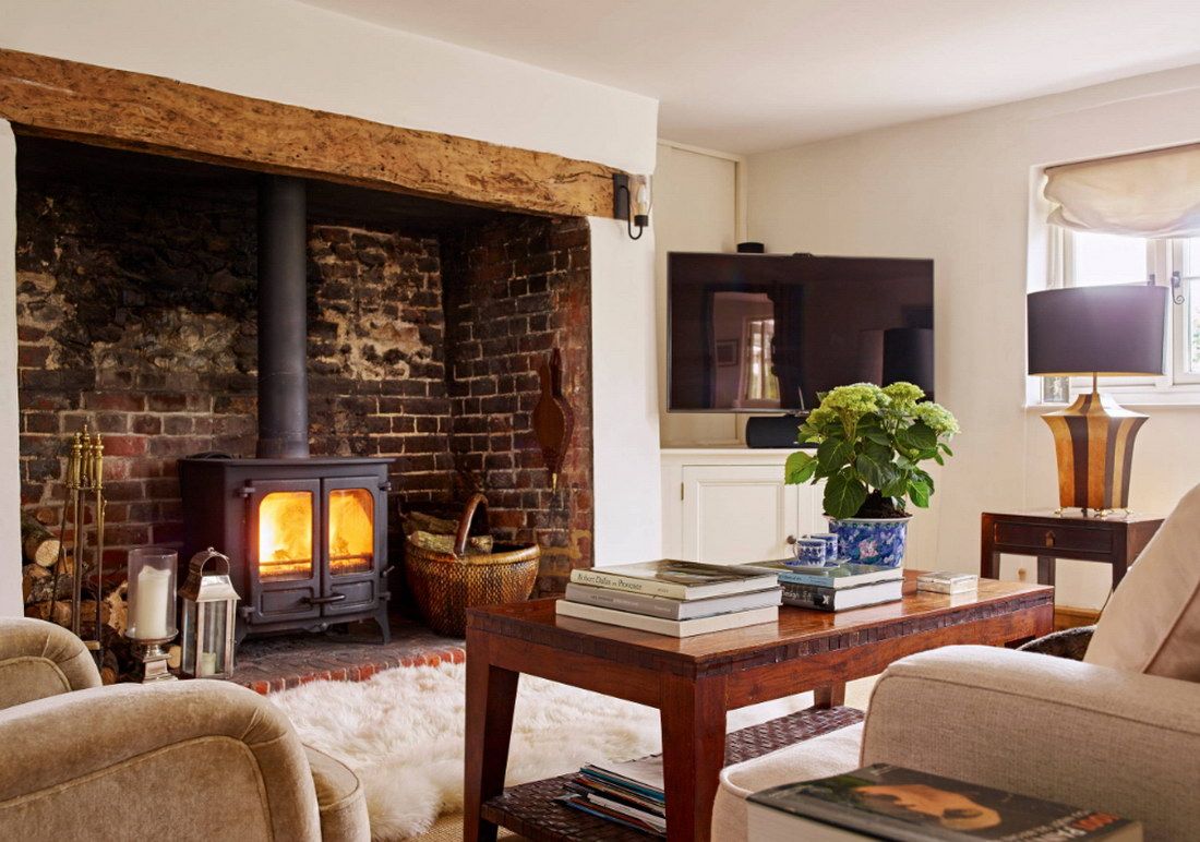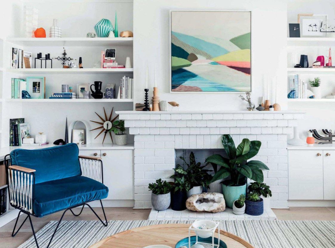 Покрасьте старый кирпичный камин в белый цвет и добавьте на него красивый декор, чтобы улучшить его внешний вид.Вы также можете увидеть здесь различную мебель из дерева, которая добавила пространству немного естественности.