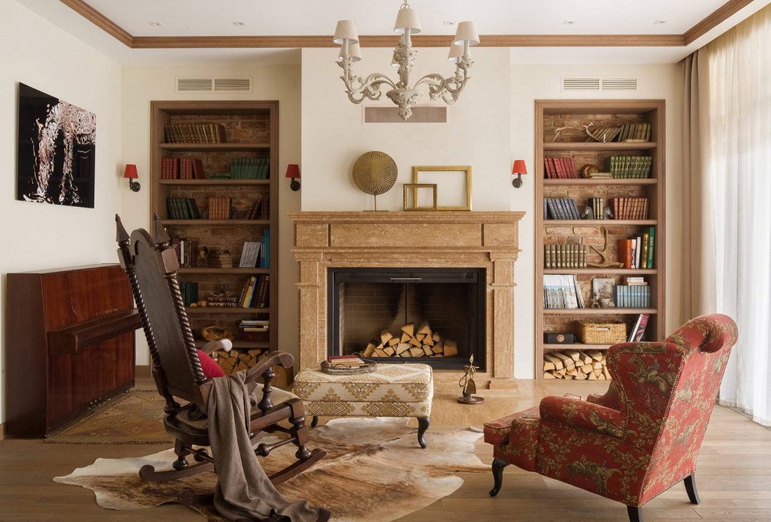 Оформление гостиной с камином