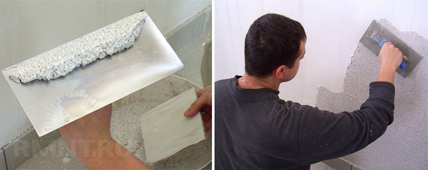 Нанесение мраморной крошки (штукатурки) на поверхности