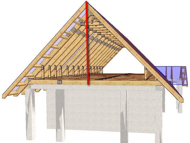 Для того, чтобы в затяжке не случилось прогиба под тяжестью своего веса, ее необходимо связать с коньком крыши, местом стыка двух скатов.