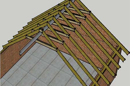 Их можно изготовить из скрепленных досок или квадратного бруса, который следует обрезать до приемлемой длины и соединить гвоздями и шпильками со стропилами.