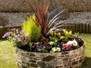 Оригинальное применение старой бочки под красивый цветник из петуний