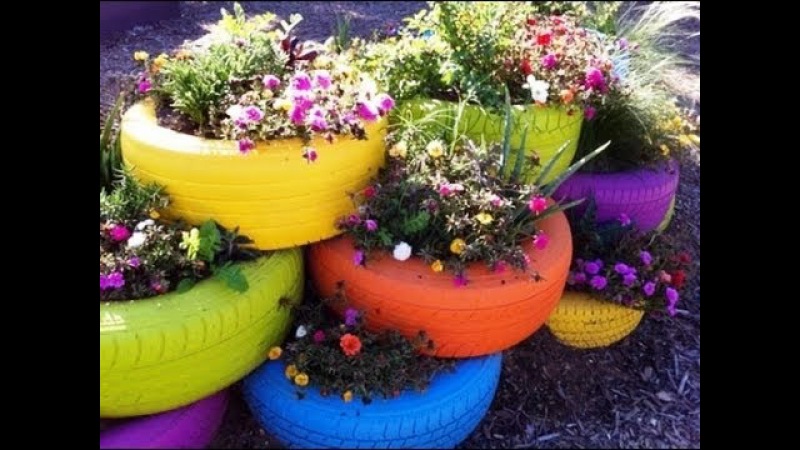 Клумбы из автомобильных шин (покрышек)