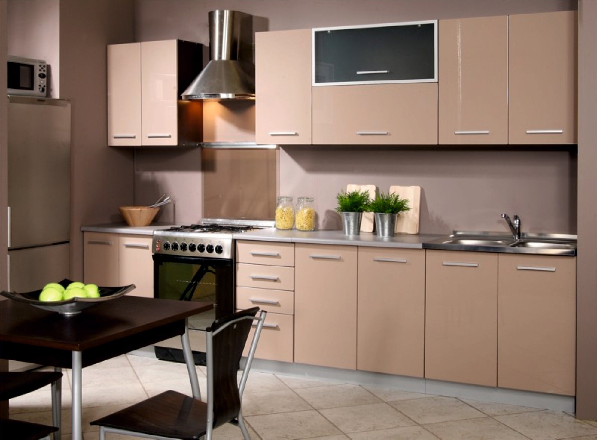 выбор кухонного гарнитура цвета кофе с молоком в интерьер, варианты дизайна фасадов с глянцем и без