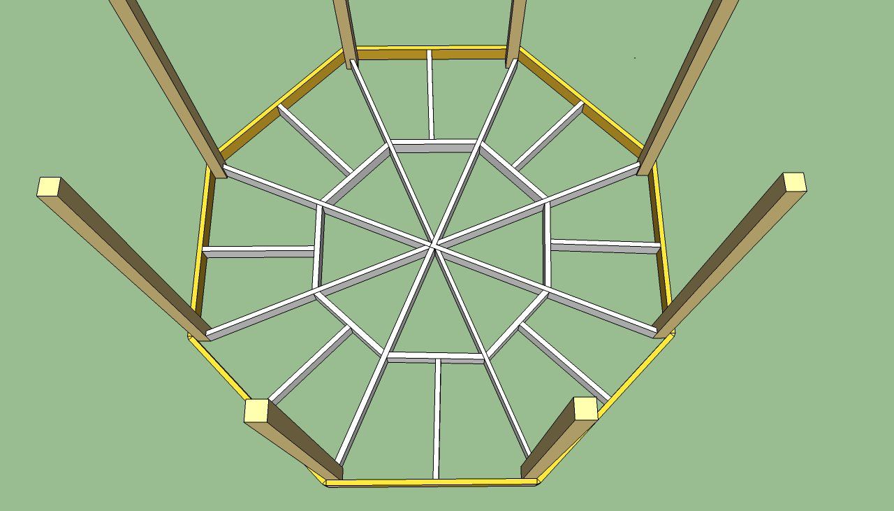 Для большей прочности перед заливкой фундамента в центр каждой ниши вбиваем стержни арматуры так, чтобы ее верхние края выступали над опалубкой не менее чем на 20-25 см. Первоочередная задача — очистить место установки от стороннего мусора, утрамбовывать и выравнивать площадку.Затем необходимо на подготовленном участке разметить круг радиусом, равным длине одного из краев беседки. В качестве напольного покрытия оптимальным будет использование классической обрешетки, листов фанеры или ориентированно-стружечной плиты. Если же в качестве вагонки выбрана мягкая кровля, то необходимо предварительно покрыть каркас крыши жестким основанием (листы фанеры или плита OSB), а затем приступить к отделке. Для этого вам нужно будет застелить место под будущим полом полиэтиленовой пленкой и засыпать немалым слоем песка.Первоначальные варианты пристройки беседки от Дельты были следующие: Нет. Далее, чтобы собрать стропила в единую систему, необходимо сделать шестиугольную деревянную заготовку, которая впоследствии закрепляется в центре кровли и соединяет каждое из стропил.
