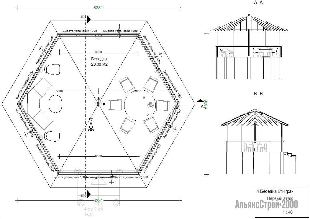 Готовый проект шестигранной беседки для дачи