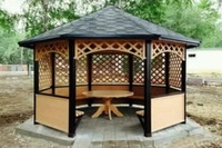 Шестигранная беседка возводится наряду с сооружениями традиционных форм: круглой, квадратной или прямоугольной.