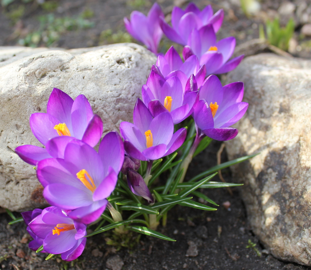 Хорошо подходят для альпийских горок низкорослые луковичные, такие как крокусы, сциллы, мускари, гвоздики.