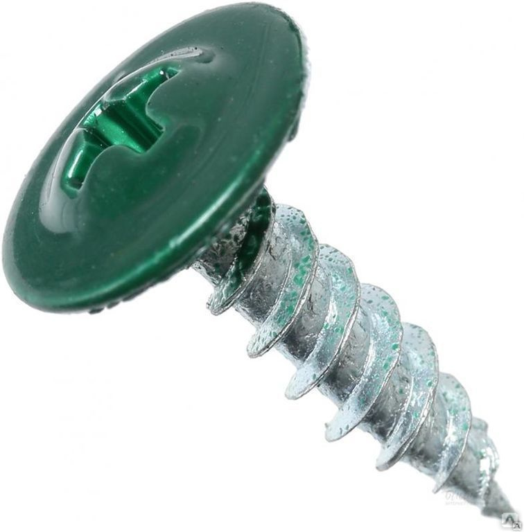 Саморезы с прессшайбой окрашенные применяют для монтажа тонколистовых элементов к деревянным конструкциям. Тарельчатые головки готовых оцинкованных изделий окрашивают в цвета каталога RAL, которые также применяют при нанесении цвета на профлисты из металла.