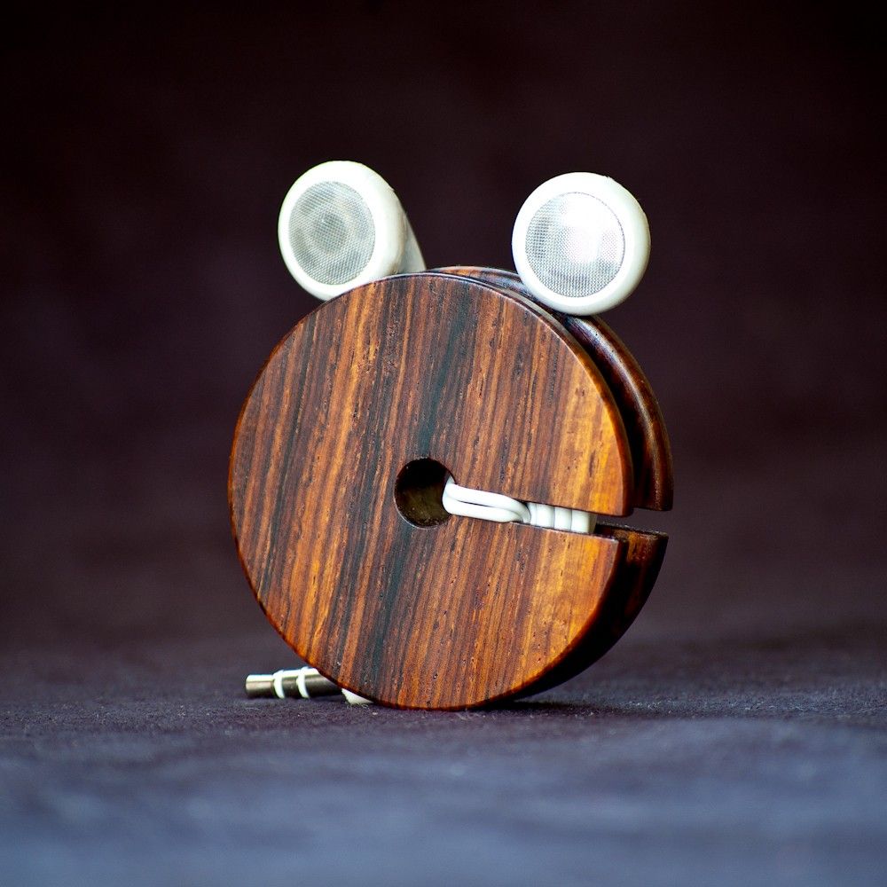 - Уберечь наушники от запутывания помогут две деревянные прищепки. Склей их между собой и закрепи на них наушники.