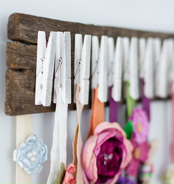 - Сделай оригинальный горшок для цветов с деревянных прищепок. Возьми любую коробку, прикрепи к ней прищепки и пересади растение.