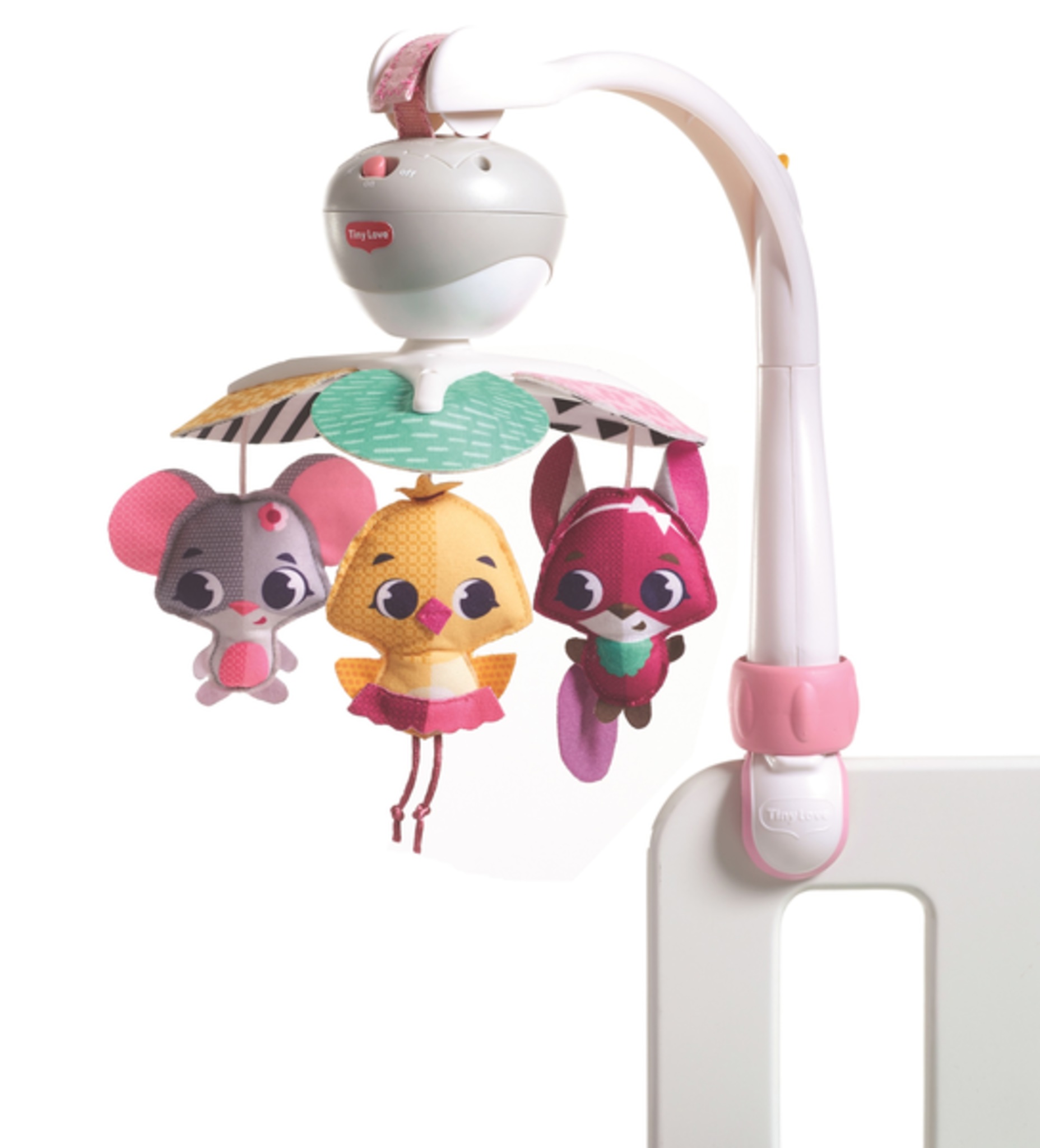 Мобиль Tiny Love Волшебная лампа подходит для новорожденных детей и будет интересен малышам до 2–2,5 лет. Мягкие игрушки легко снимаются и крепятся на пластиковую основу. Имеет музыкальный блок с тремя типами мелодий: колыбельные, звуки природы и классические.