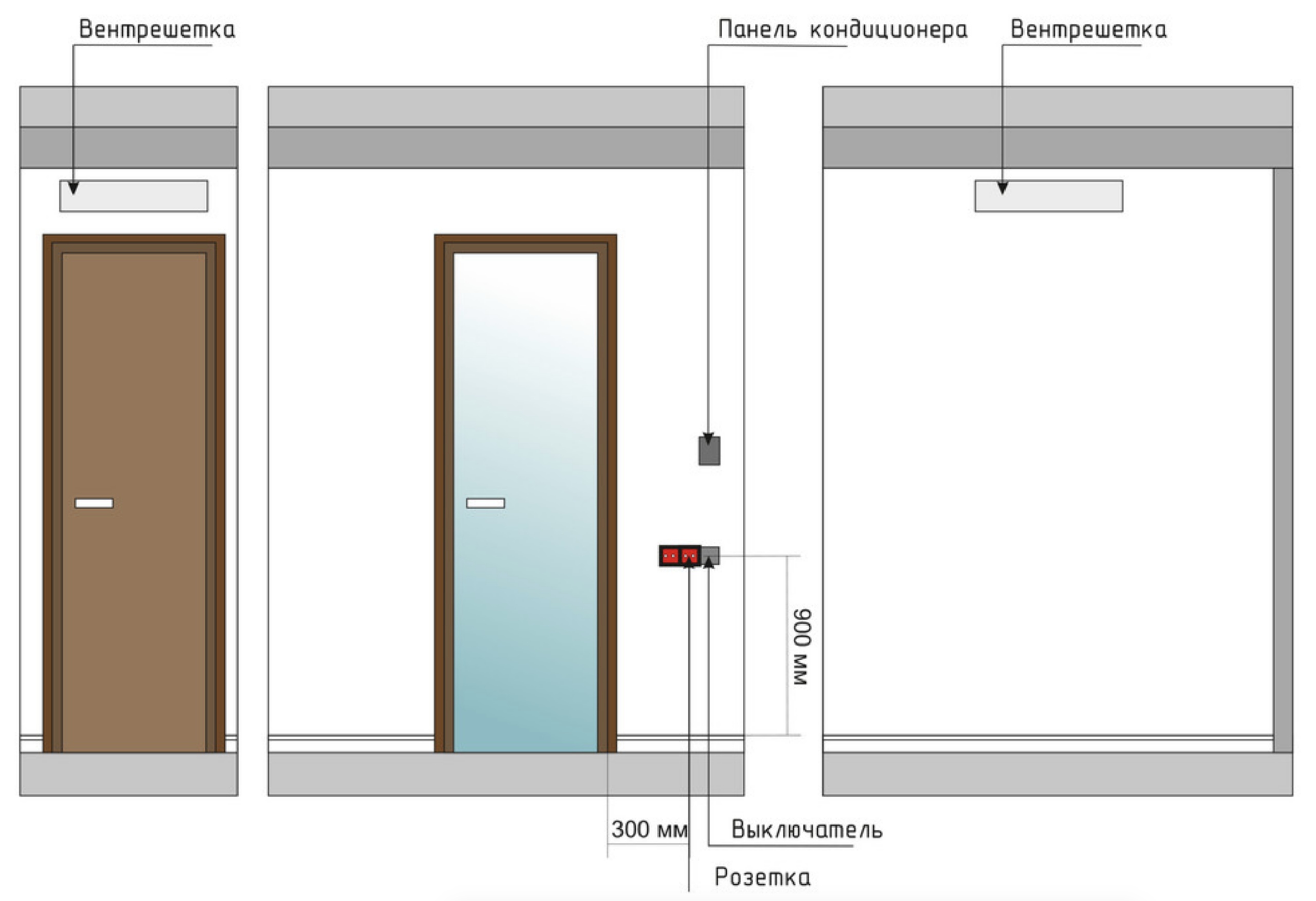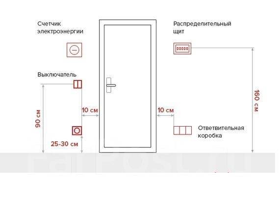 Установку выключателей необходимо планировать таким образом, чтобы устройство не оказалось за закрытой дверью. От проема двери выключатели устанавливают на расстоянии не менее 100 мм.
