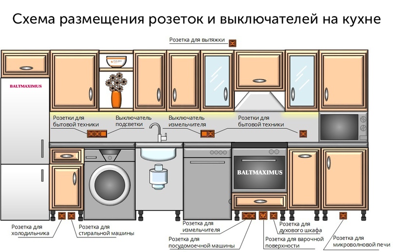 Особенности установки розеток и выключателей на кухне