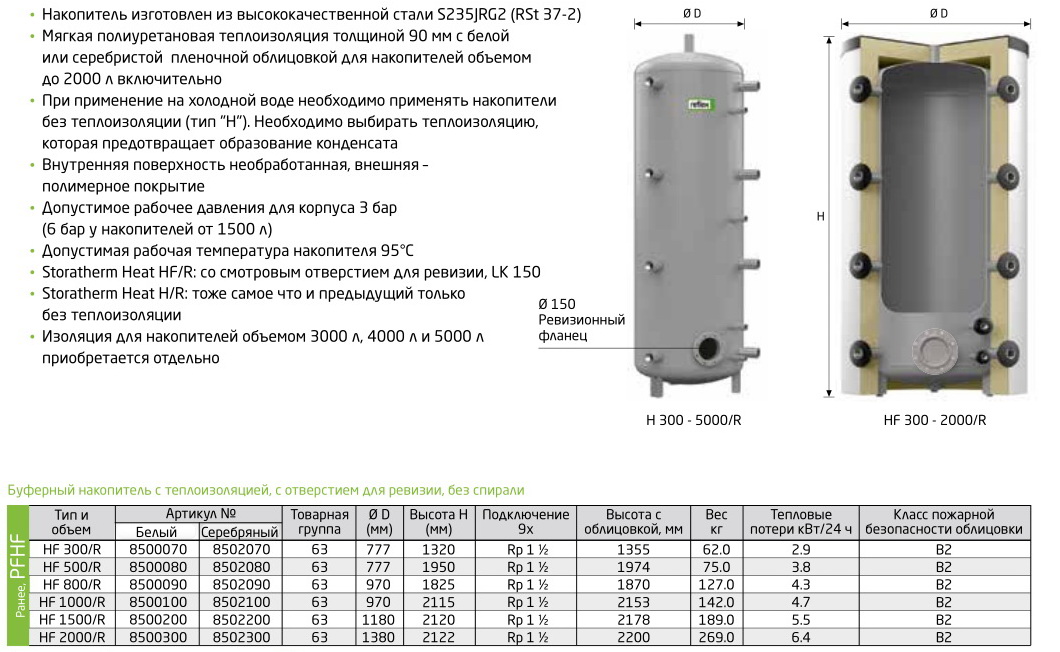 Теплоаккумуляторы из нержавеющей стали используются для нагрева и хранения питьевой воды, воды для санитарных нужд (душевые, прачечные, бассейны и т.