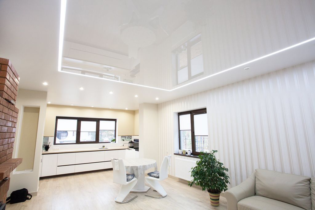 Белые глянцевые натяжные потолки отличаются следующими положительными качествами