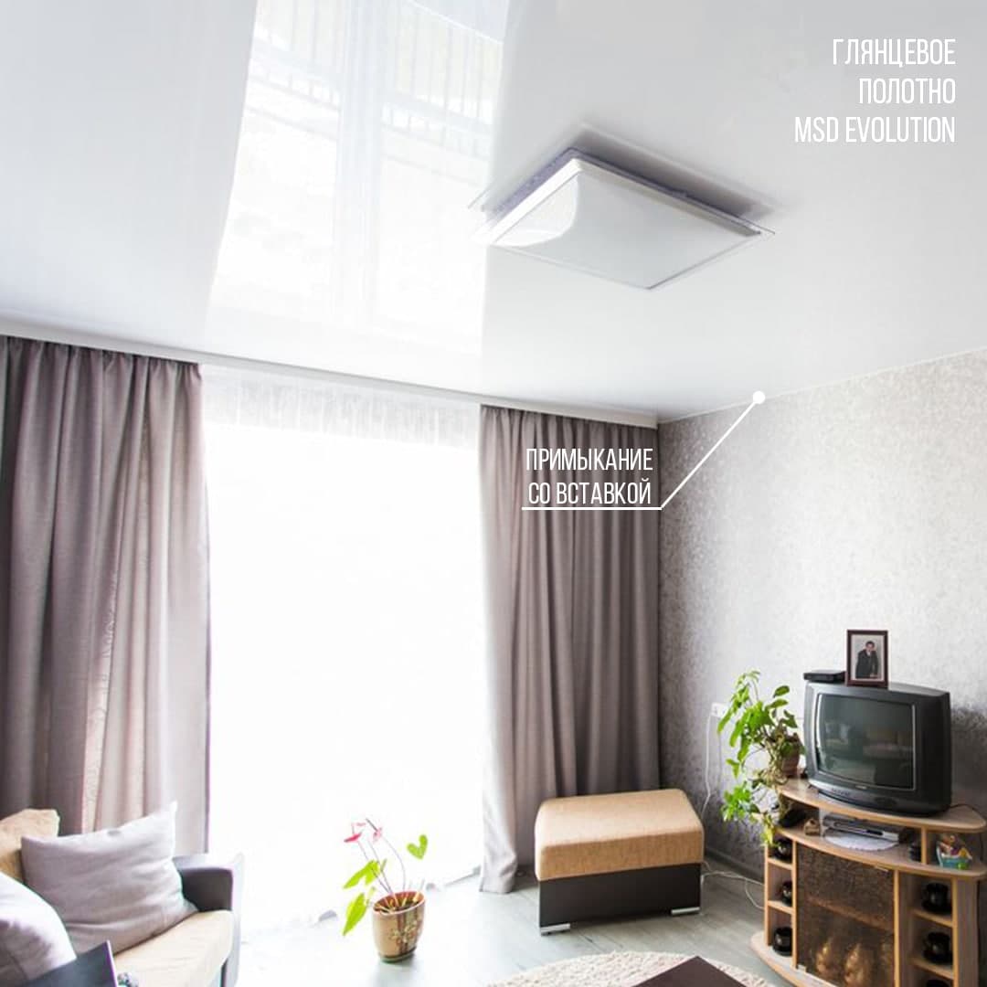 Одноуровневый глянцевый натяжной потолок