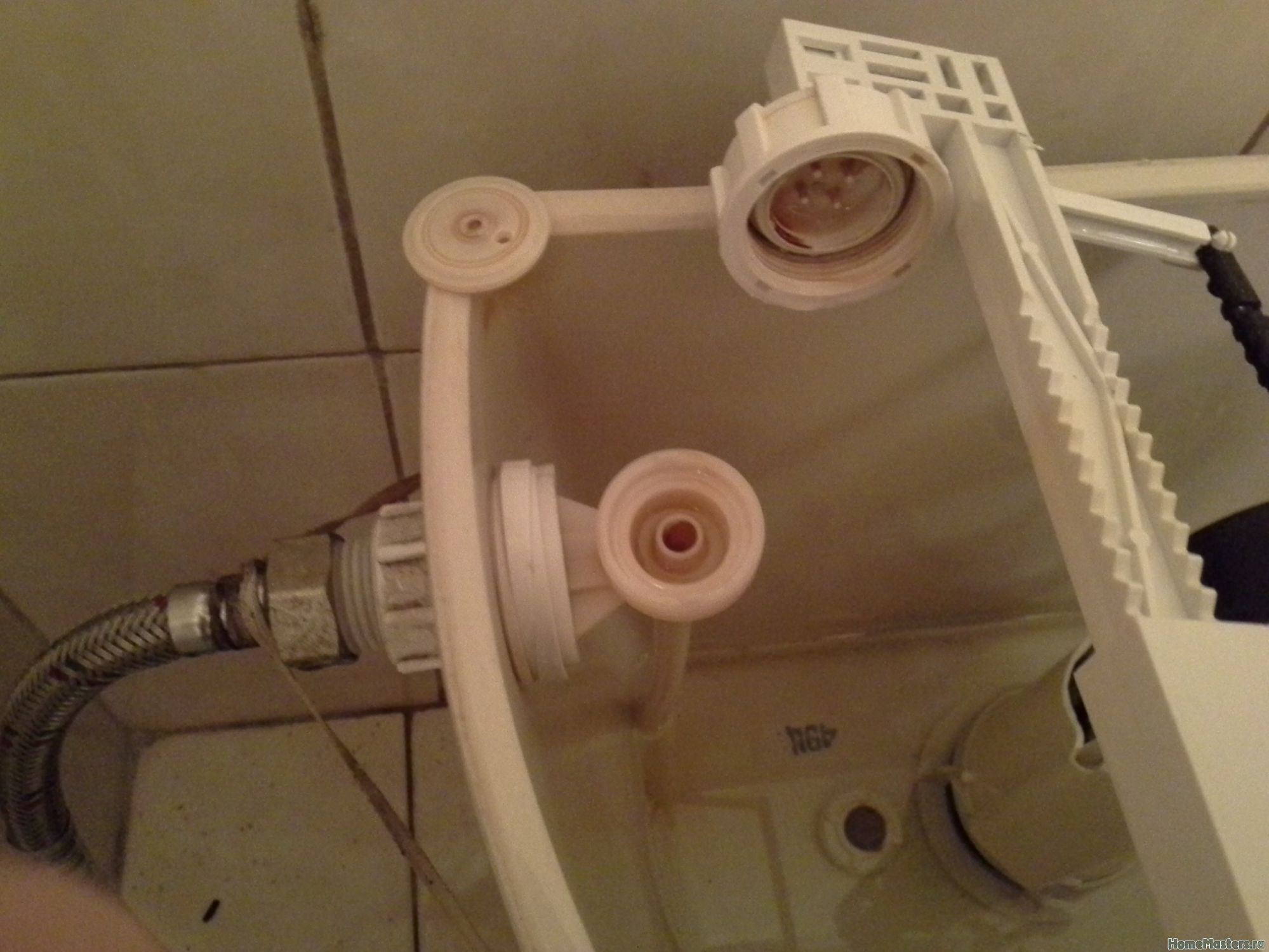 После того, как откроете крышку, вы увидите несколько отверстий диаметром 1,5-2 см для подвода воды (может быть, только одно). В одном из них будет закреплена наполнительная арматура с мембранным клапаном.