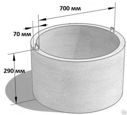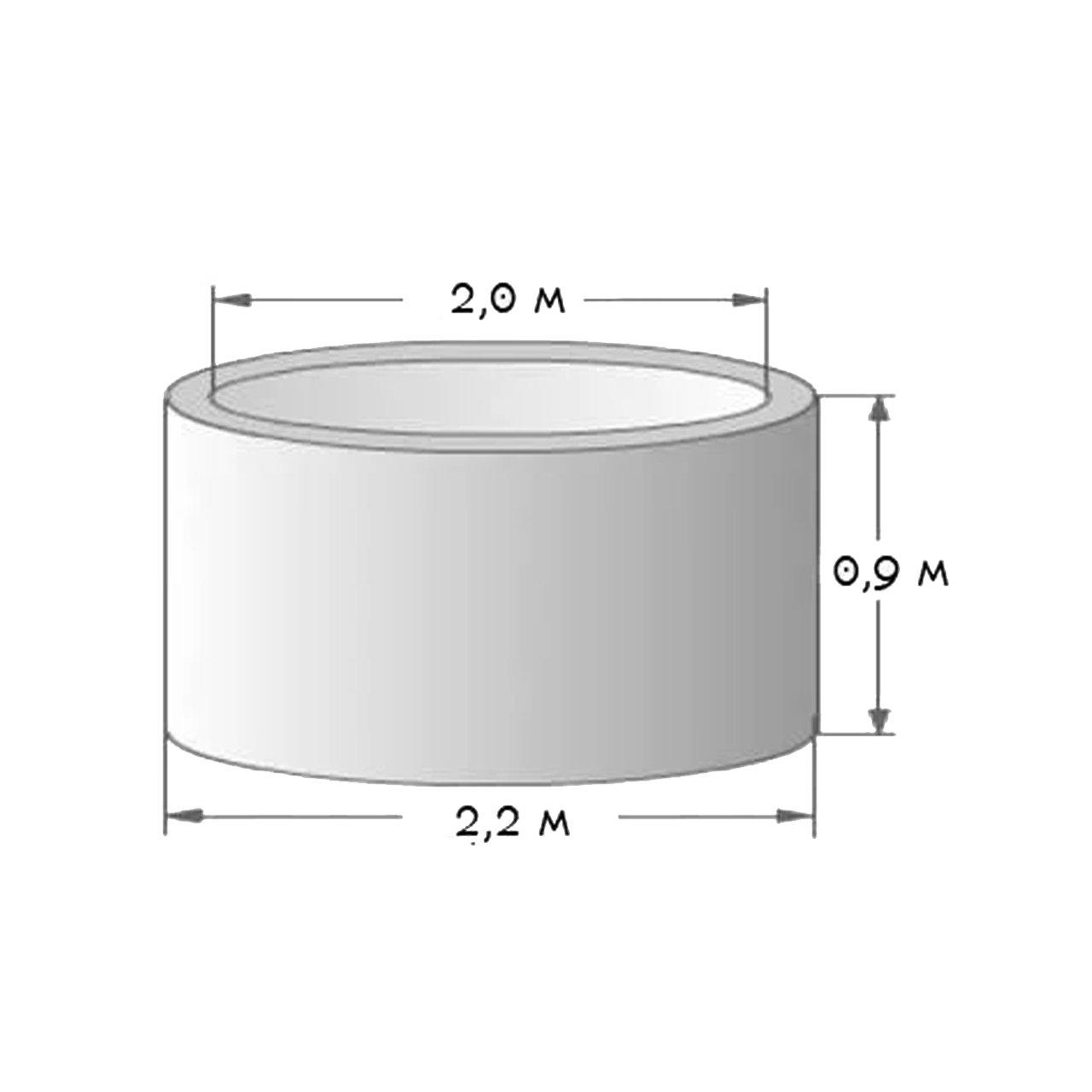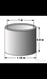 Одним из важных параметров подобного изделия является объем бетонного кольца — 1 метр кубический, это единица измерения всех подобных расчетов.