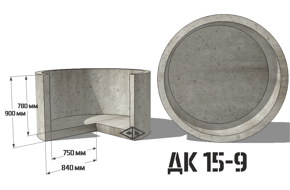 Вначале на маркировке указывается тип конструкции: КС – кольцо стеновое, КСД – кольцо стеновое с днищем. После типа прописывается размер кольца, первая группа цифр обозначает диаметр кольца, после дефиса – высота изделия. Например, КС-15 обозначает стеновое кольцо диаметром 1500 см.