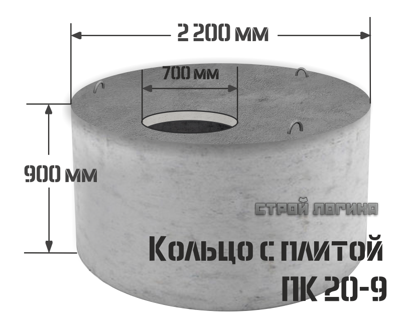 Но так как существует множество различных вариантов на строительном рынке, возьмем, к примеру, опорное кольцо КО 6 — объем бетона изделия рассчитывается так: