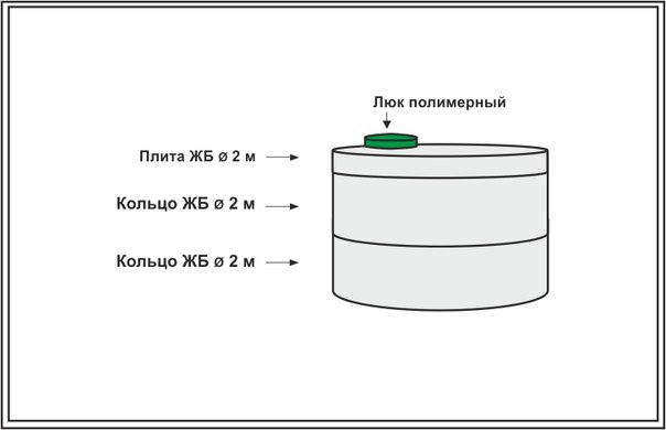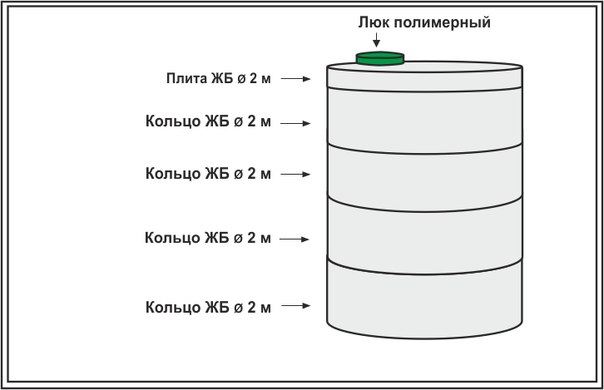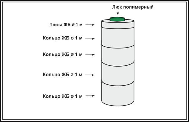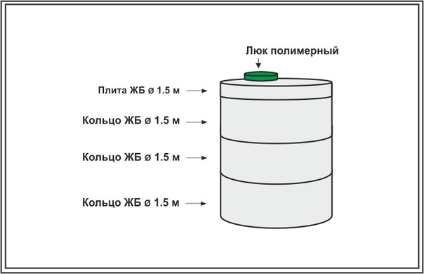 Однокамерный септик из железобетонных колец должен иметь дно и крышку. Такая выгребная яма считается малоэффективной, ее устанавливают чаще всего на даче.