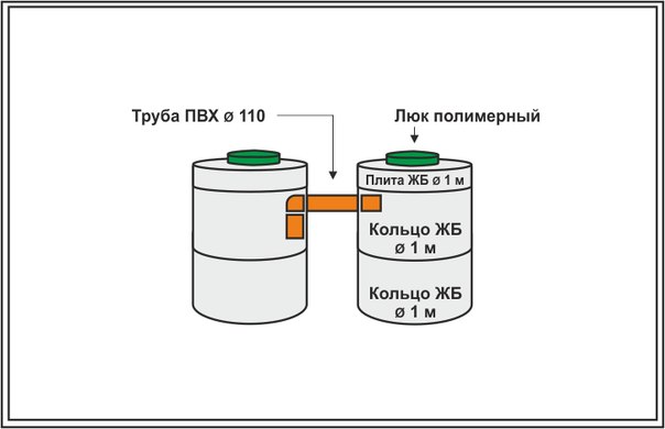 Канализационная система, оборудованная ЖБ-кольцами, надежно защищена от различных погодных условий и защищает грунтовые воды от утечки канализационных стоков.
