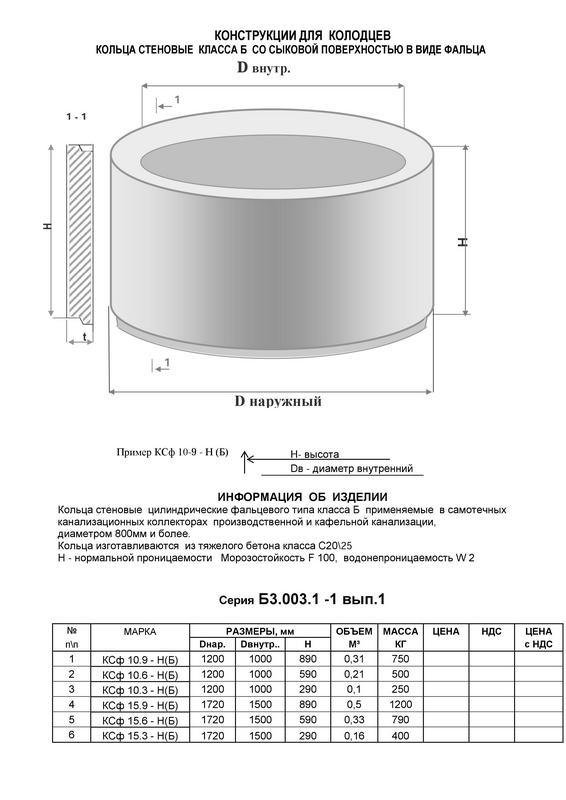 - К — 1а, высота -18 см, внутренний диаметр – 58 см, наружный диаметр – 100 см, масса – 160 кг.