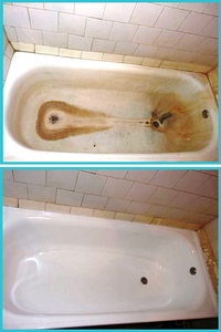 — Ванна начала впитывать ржавчину от воды, покрылась пятнами, почти не отмывается. Понадобится полное обновление покрытия эмалью или составами на основе акриловых смол.