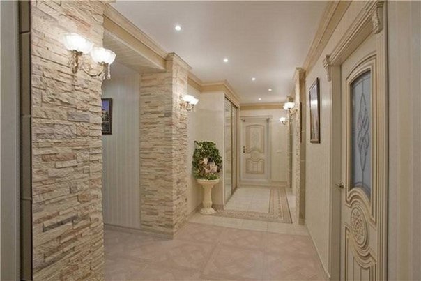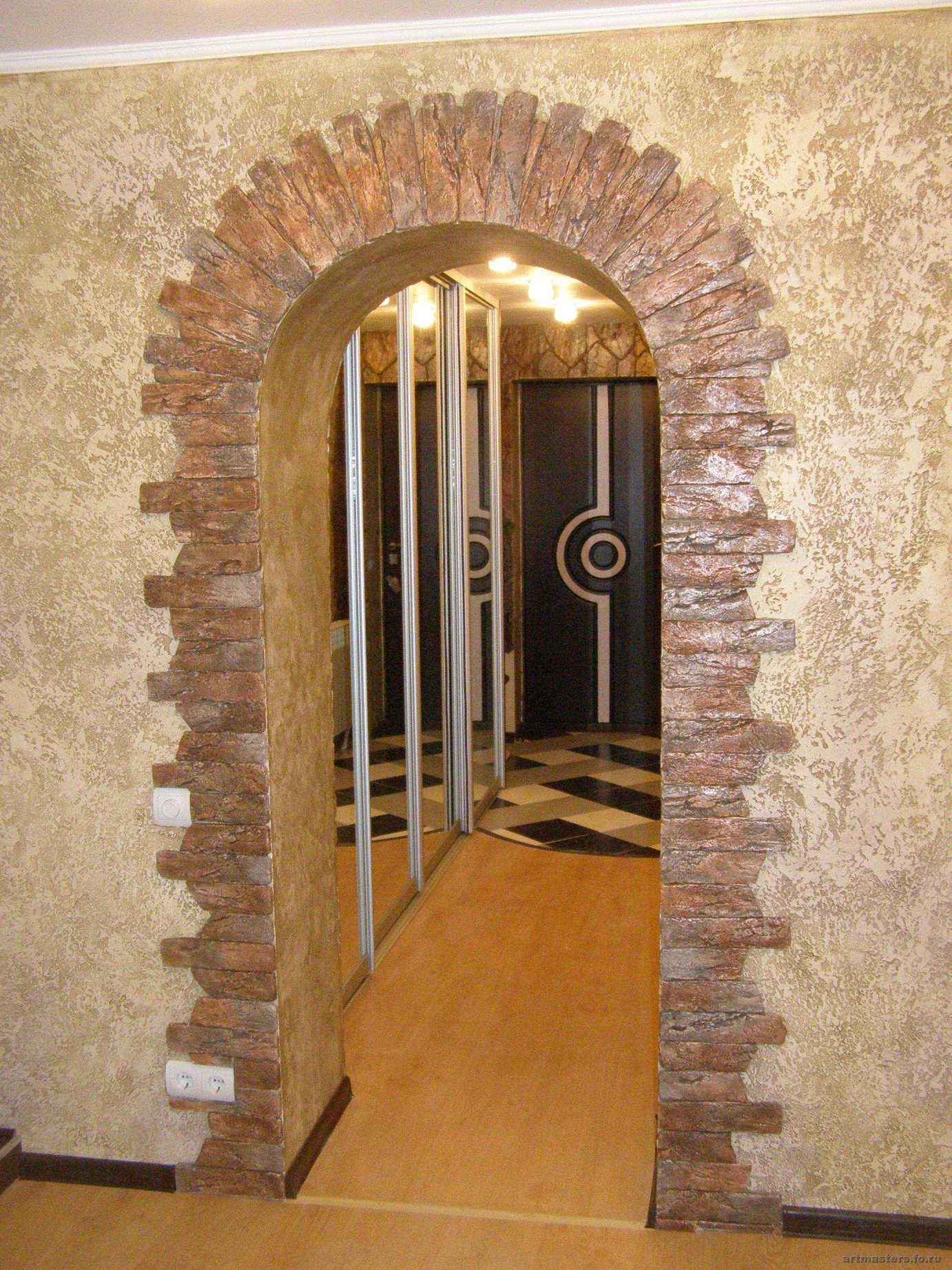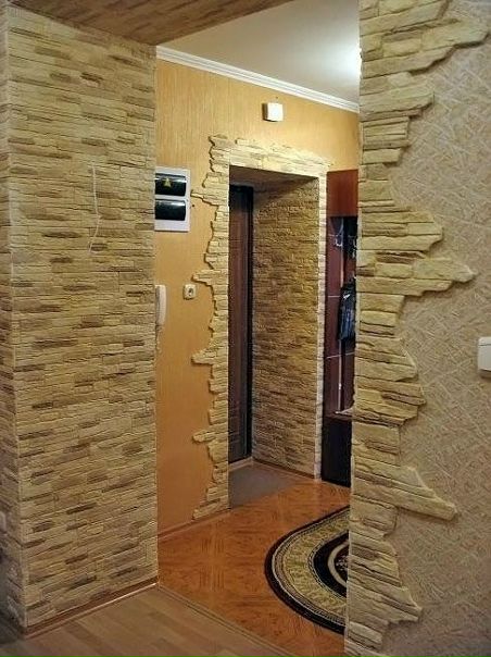 Лучше использовать фрагментарную облицовку вокруг дверных или арочных проёмов, зеркал, углов.