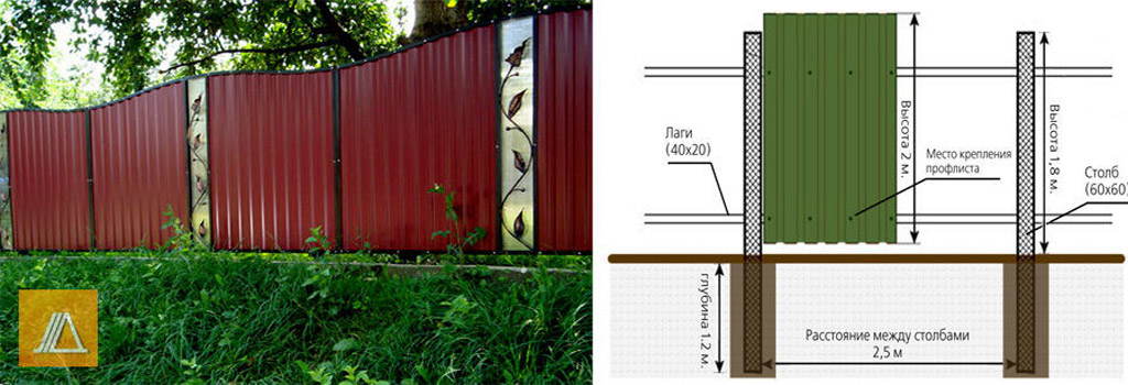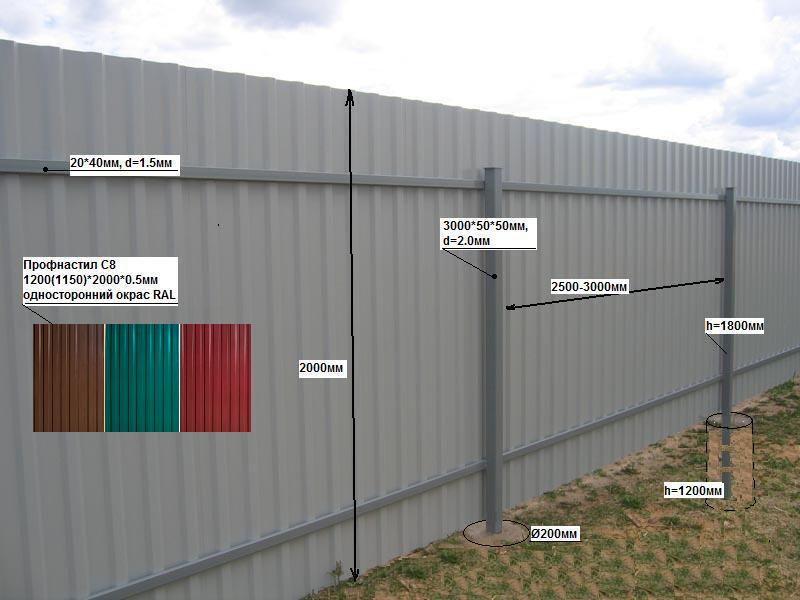 При этом высоту забора хозяин волен выбрать самостоятельно (безусловно, в разумных пределах), так как профилированный лист можно заказать любой длины.